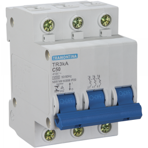 Leve alta qualidade para seus projetos elétricos, com o Disjuntor TR3KA 3 P 50 A Curva C Tramontina.